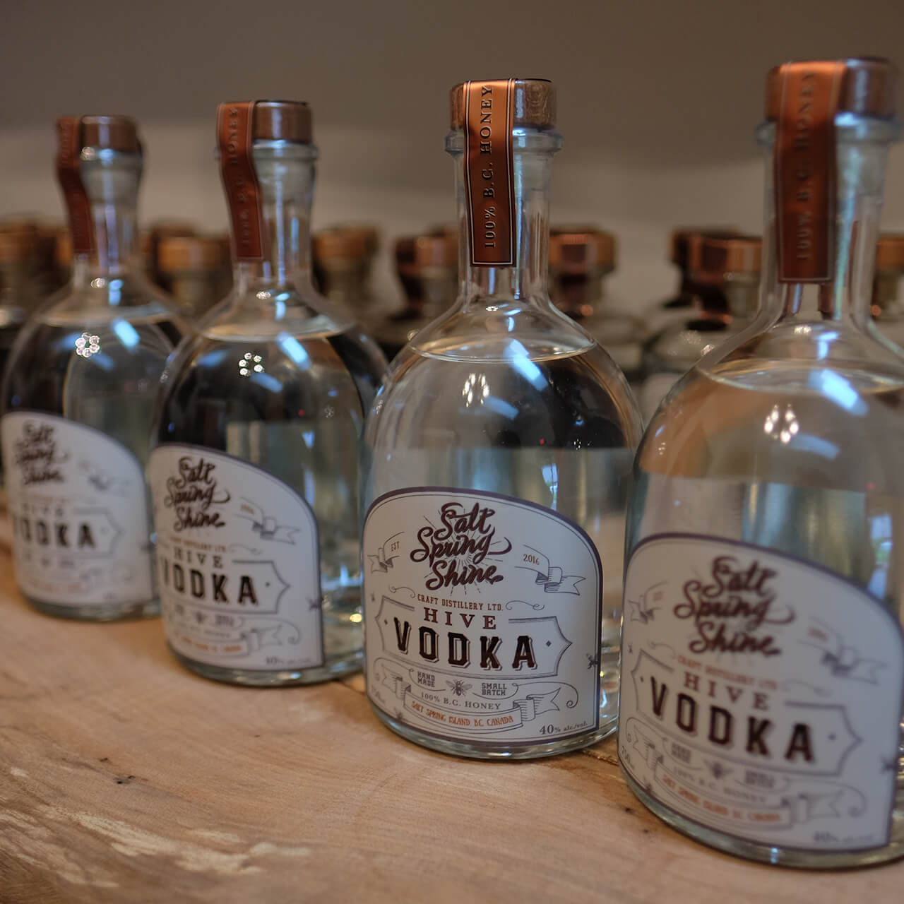 From our home and distillery to our beautifully packaged spirits, we’ve built Salt Spring Shine entirely by hand. Based on the delicate flavours achieved by fermenting with honey, our products feature fruit from British Columbia soil and organic botanicals from around the world. We hope you enjoy our line of fine spirits.